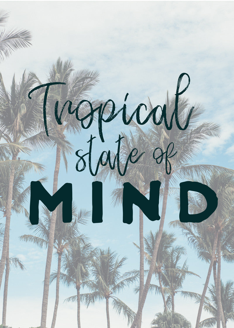 • White coastal bedroom with tropical palm tree photo print. Surf shack and beach bungalow vibes. "Via Paradise" beach print by Kristen M. Brown of Samba to the Sea for The Sunset Shop.
